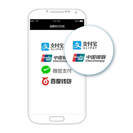 忆宇支付,为iOS/Android原生/H5 App提供支付解决方案:支持微信支付、支付宝支付、银联手机支付、百度钱包等。